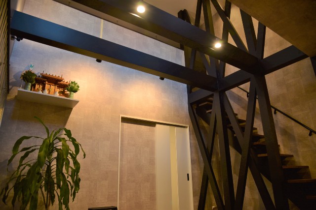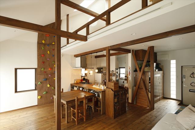 筋交いをおしゃれに活かして抜けない壁と柱を有効活用。