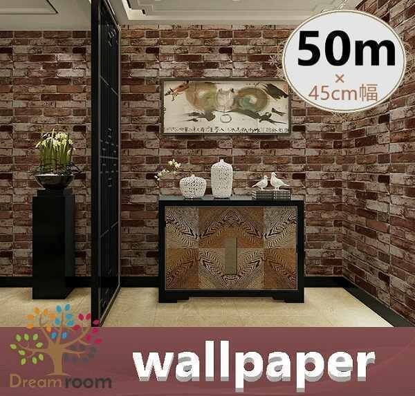 50m3D レンガ MIX ブラウン ウォールペーパー ビンテージ 石垣 ストーン 壁紙 北欧風 インテリア はがせる シール。