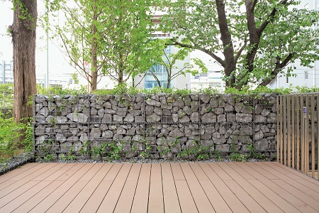石を金網に詰めて石垣風に緑化形式ごとの事例 - 5×緑 ゴバイミドリ。