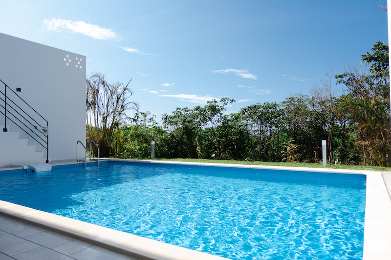 岩手のお庭・エクステリア&デザイン専門店 エクステリアモミの木白い塗り壁のアジアンリゾート風のお庭。