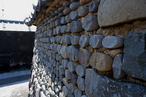 かくれんぼしちゃった^^ 見事な風よけの壁♪ 倉岳町の 「棚底石垣」七転び七起き。