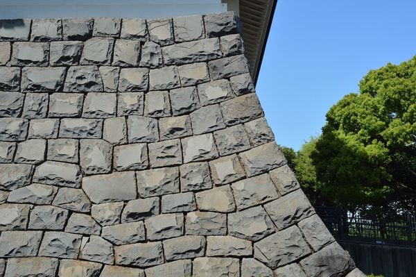石垣に挟まれたコンクリ壁の意匠、石垣風。: 大阪 アホげな小発見。とか。