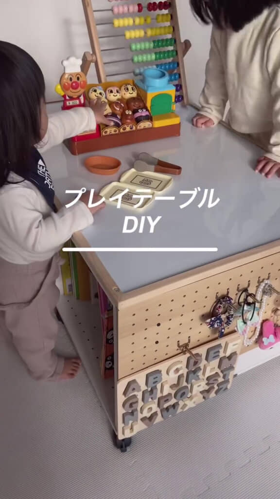 うちの子どもも大好きなプレイテーブル♪ 今日はシルバニア用に使っているプレイテーブルの作り方を5つの手順でお送りします🎥✨遊びの発展性や学びが広がるDIYおもちゃ棚です♡ シルバニア以外にももちろん使えますよ😊 プレイテーブルは子どもだけでなく、 ママも。