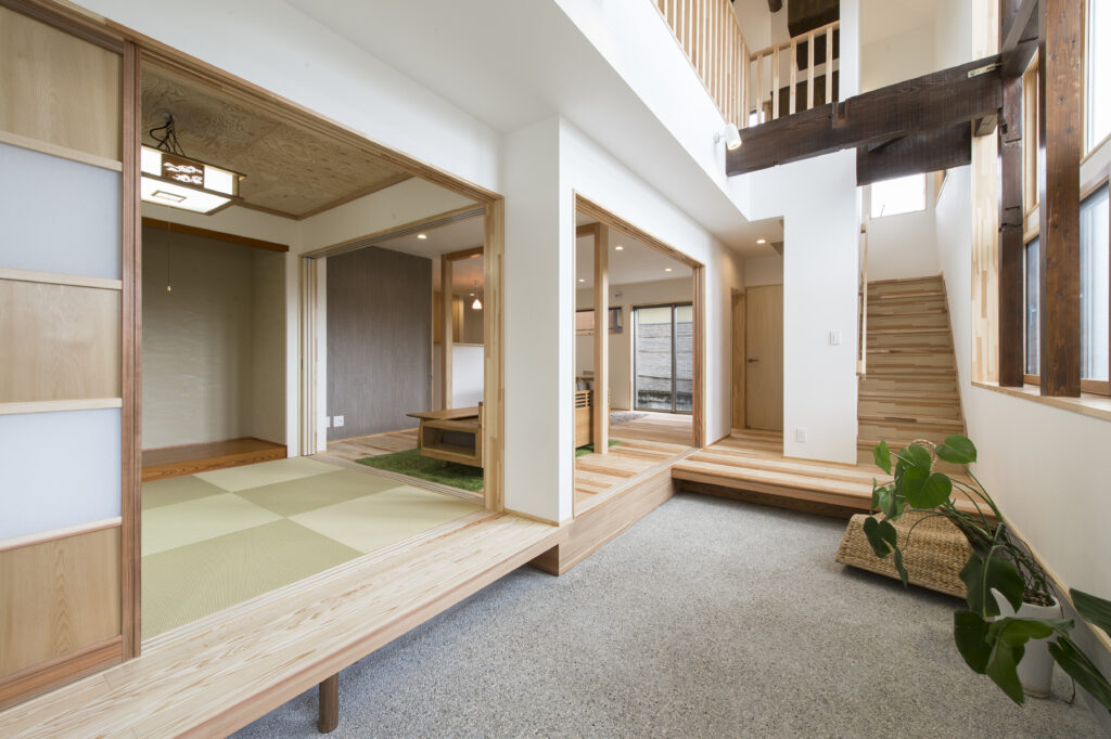 リビング横の和室をおしゃれに作る方法は? レイアウト&仕切り方のポイント重量木骨の家。