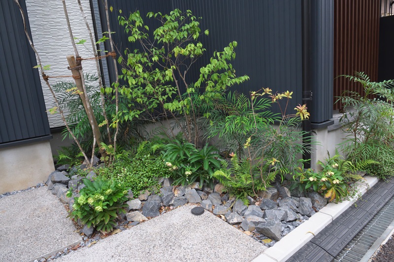 ロックガーデン 大きめの岩や石の隙間に植栽したお庭です。 京阪グリーン京阪グリーン守山おしゃれな庭 おしゃれな外構お庭つくりロックガーデン みどりのある暮らし玄関周り 駐車場お庭のリフォームガーデン ガーデンデザイン施工事例。