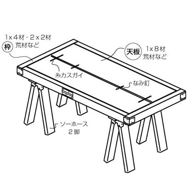 分解できるソーホース 馬脚 の机DIY。必要なときだけ組立てられる作り方! - makit メキット by DIY FACTORY。