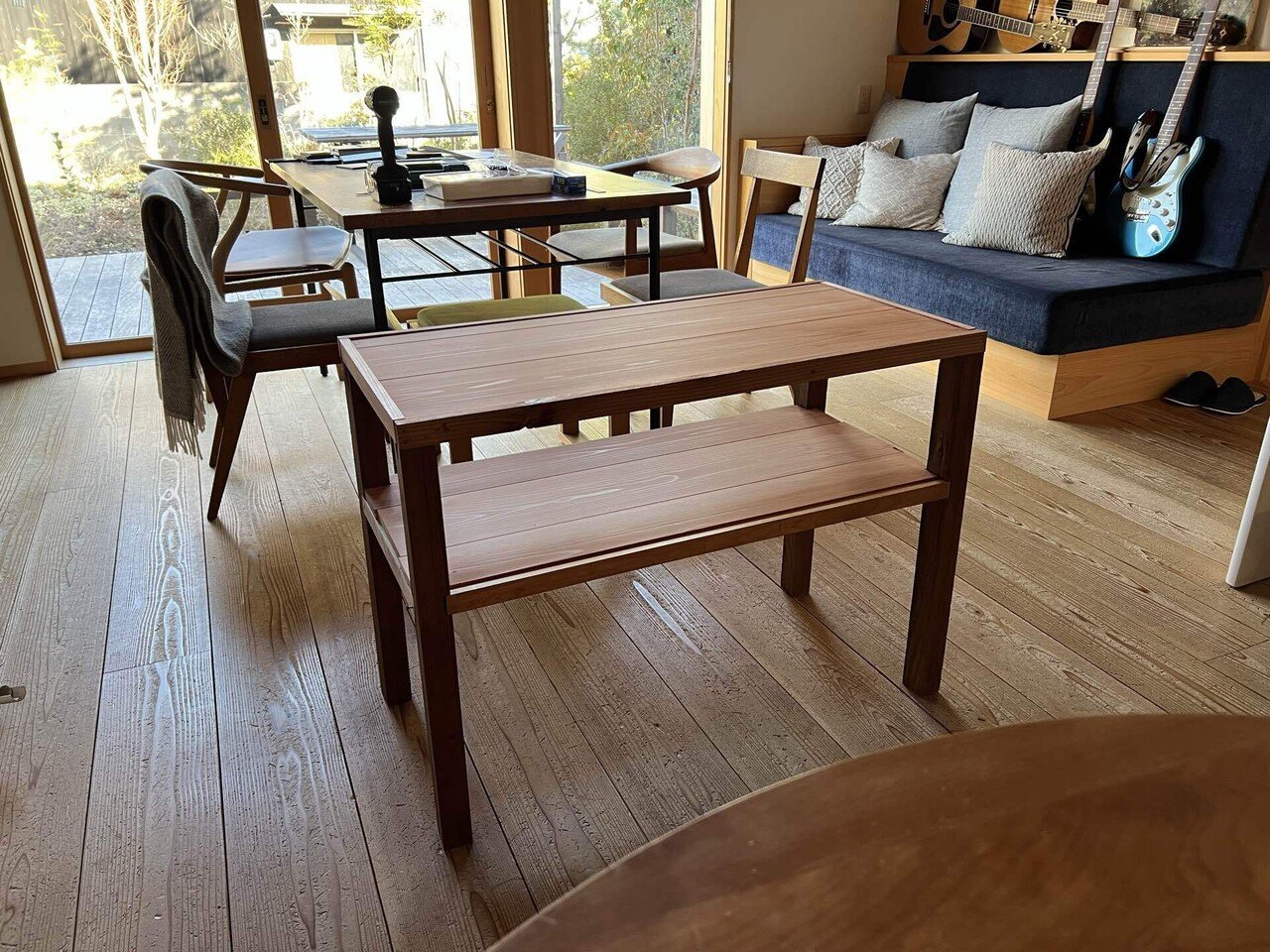 DIYサイドテーブル ソファーに刺せるサイドテーブルの作り方!!安定させるポイントあり!!杉の柄を生かしてオシャレに仕上げる!!ちょい置きにピッタリで便利 diy大工さんサイドテーブル。