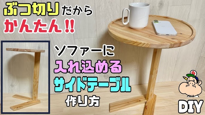 DIYサイドテーブル ソファーに刺せるサイドテーブル の作り方!!安定させるポイントあり!!杉の柄を生かしてオシャレに仕上げる!!ちょい置きにピッタリで便利 diy大工さんサイドテーブル -YouTube。