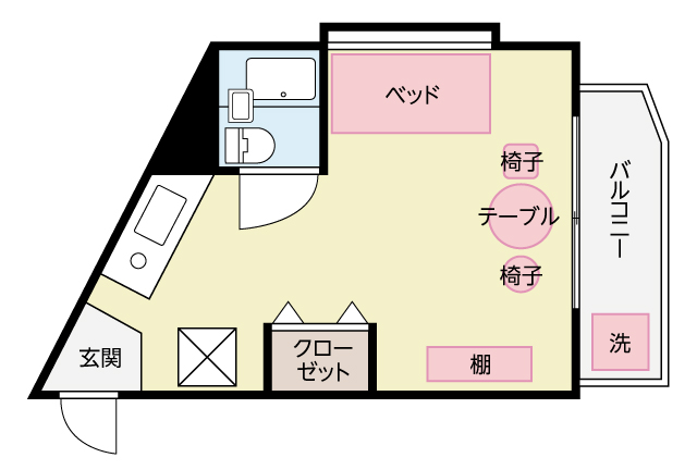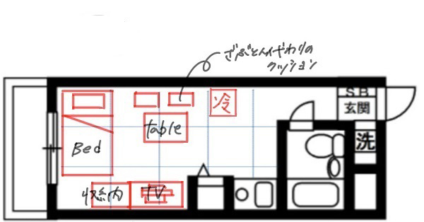 ワンルーム 1R に家具はどう置く?一人暮らしの間取り レイアウト例6SUUMOお役立ち情報。