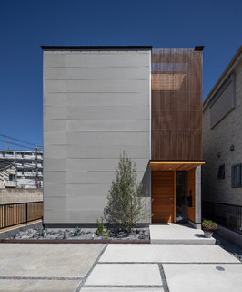 グレーの外壁が生えるウッディモダンエクステリア 千葉県四街道市グレーの外壁が生えるウッディモダンエクステリア 千葉県四街道市│千葉の外構・エクステリア・リフォーム・門塀のご相談は株式会社日本造園土木。