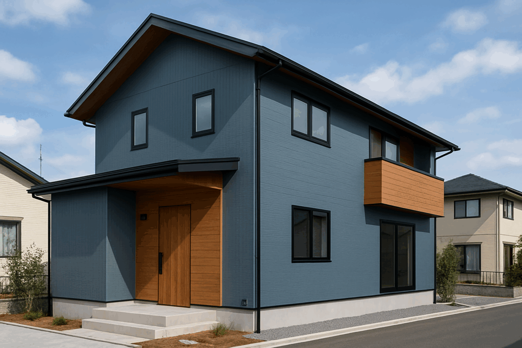 和モダンの外観をグレー・木目にしたおしゃれな事例後悔しない外壁デザインと色選びのポイント –IK-HOME アイケイホーム 鹿嶋市鹿行にちょうどいいZEHENE*0ROKKO STYLEならアイケイホーム。