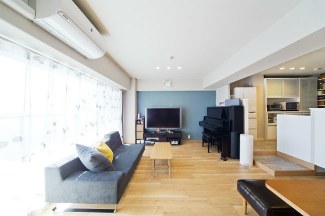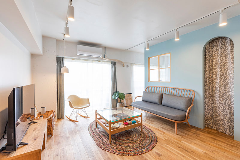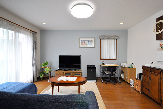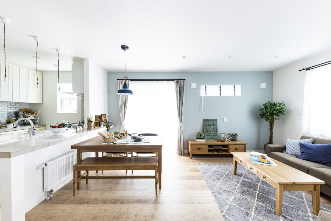 ブルーのクロスがアクセントのナチュラルなリビング 堺市中区 施工事例:リビングダイニングリフォーム 堺市のリフォームはナサホーム。