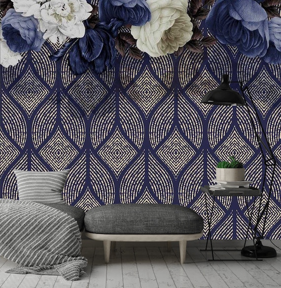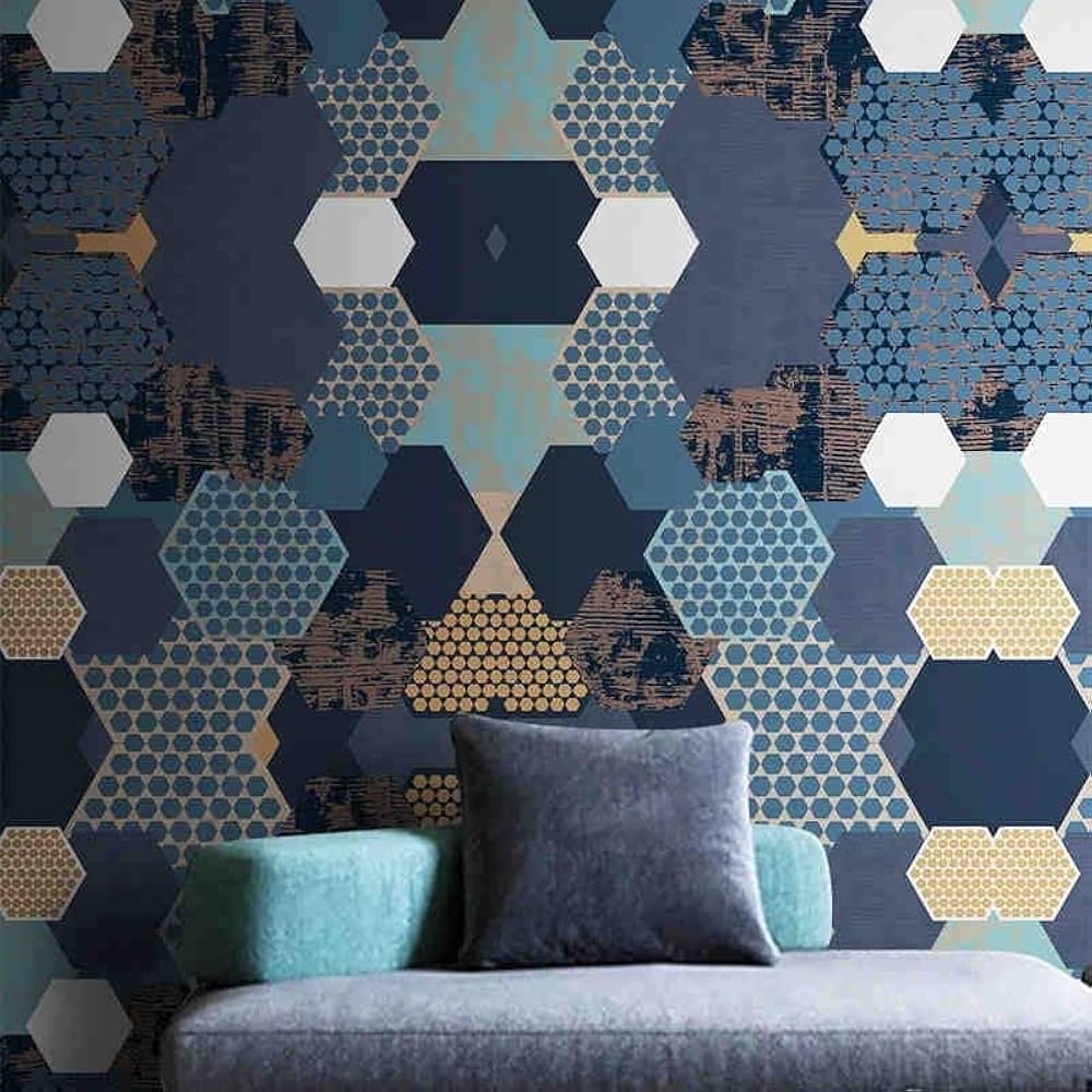 Amazonカスタムサイズのモダンな家の装飾幾何学模様ネイビーブルーの壁紙寝室用リビングルームの背景の壁 3D 写真壁画紙壁紙。
