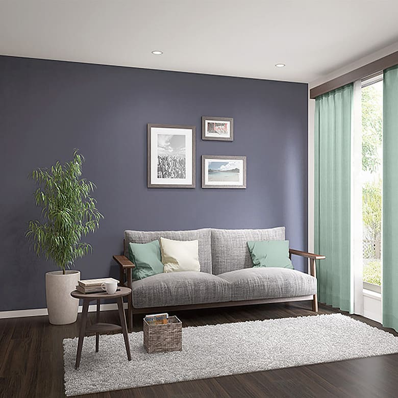 ネイビーのアクセントクロスで爽やかクールな空間へ。