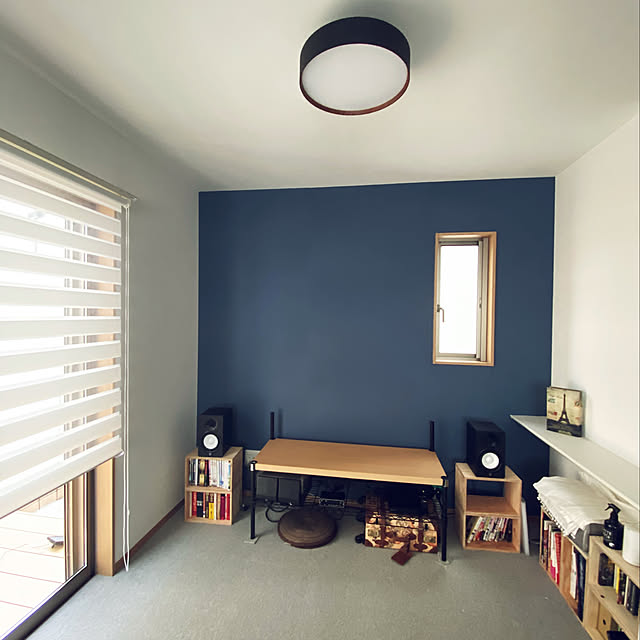ネイビー色のカーテン、ブルー系の壁紙に合わせてブラック色を取り入れたナチュラルコーデを提案!家具なび~家具の使い方を提案するブログ~名古屋・インテリアショップBIGJOYが独自のアイデアで家具の配置術などを提案。