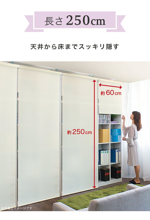 楽天市場6ヶ月保証付 間仕切り 幅60cm×高さ250cm ロールスクリーン 本棚 用 目隠し オフィス キッチン 収納 隠す スクリーン模様替え 日よけ 日除け ブラインド おしゃれ ブラインド カーテン 窓 白 ホワイト アイボリー 組立不要 : 家具ドキッ。