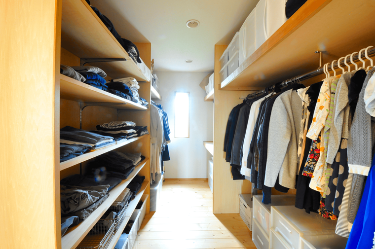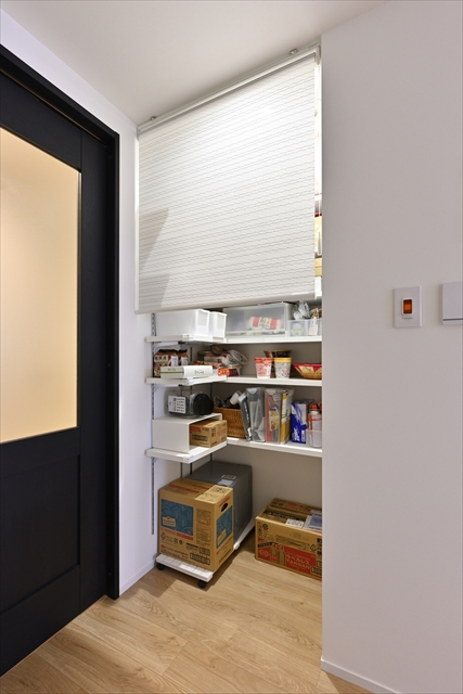 収納スペースが多く取ってある収納設計。和室のロールスクリーンは奥様のアイディア!細田建築愛知県一宮市の工務店。注文住宅一戸建てを一宮市、稲沢市、その近郊に建築しています。