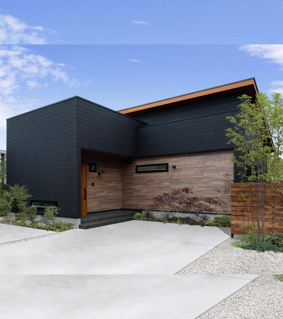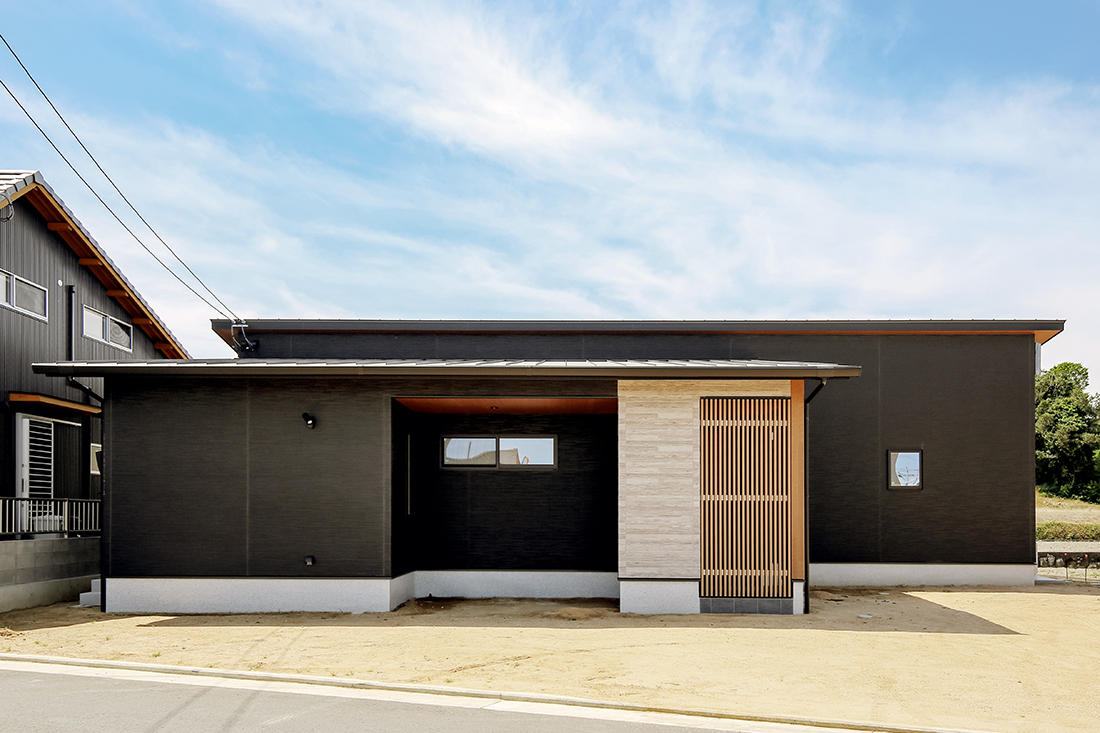 黒を基調としたシンプルモダンな平屋住宅外観 - 事例写真「愛知県×豊川の家」注文住宅のハウスネットギャラリ。