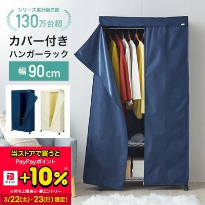 ハンガーラック カバー付き スチールラック 幅90cmコートハンガー 洋服掛け 洋服ラック ワードローブ 洋服収納 コート掛け 衣類収納専用カバー アイボリー ブラウン おしゃれ収納家具。