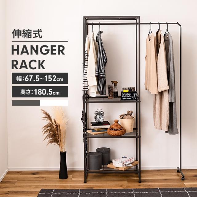 ハンガーラック 伸縮式 おしゃれ カバー付き クローゼット 収納 洋服 棚 スチールラック・メタルラック。