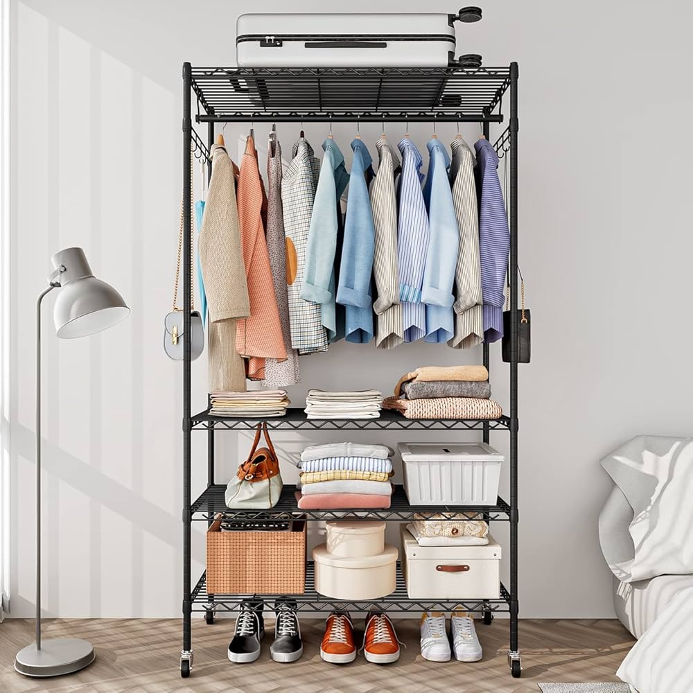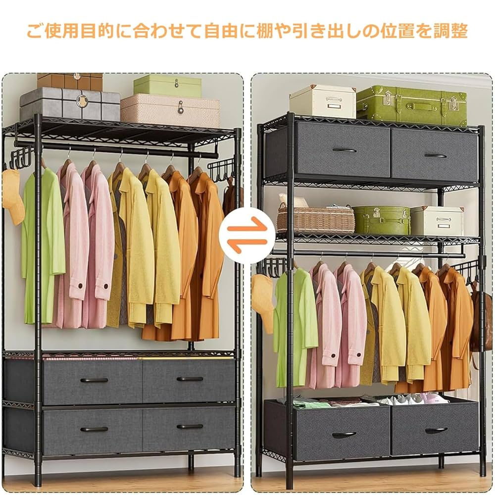 洋服ラック - 床置き式メタル衣類ラック、調節可能な吊り下げ式洋服棚 BlackAmazon.co.jp: Fainyearn ワードローブハンガーラック頑丈 メタルラック スチールラック 洋服掛け 衣類収納用 メタル製棚 高さ調節 棚3段 引き出し付き90cm×奥行40cm×高さ180cm引き出し。