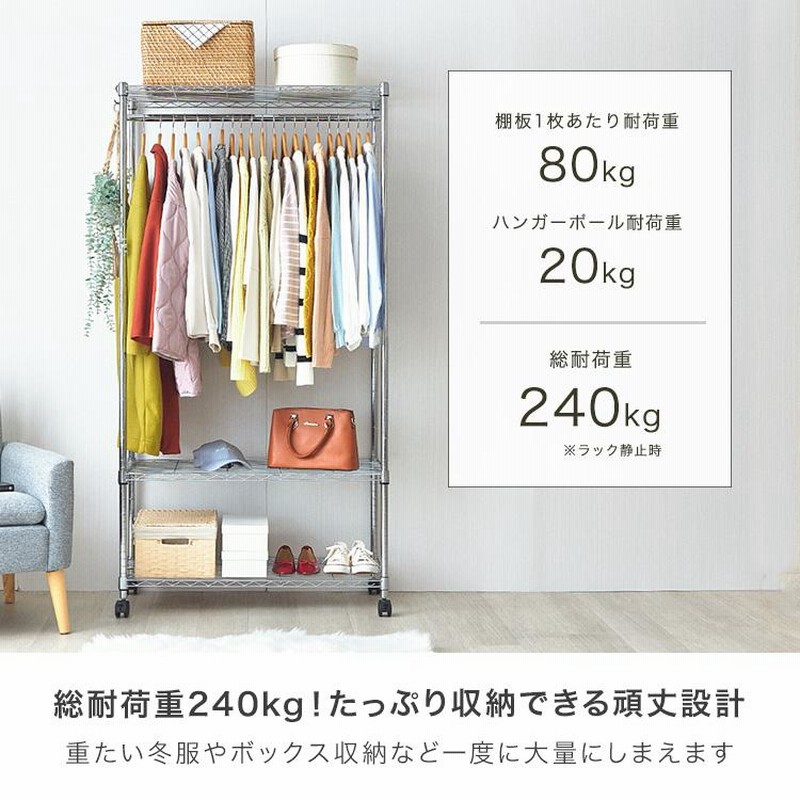 大特価! ワードローブ クローゼット ハンガーラック 幅90 3段 頑丈 丈夫 洋服収納 衣類収納 キャスター スチールラック 衣装ケース メタルラック厳選!セレクト家具ショップ♪ Luckycoco ハンガーラック 洋服ラック ワードローブ クローゼット 衣類収納用 メタル製。