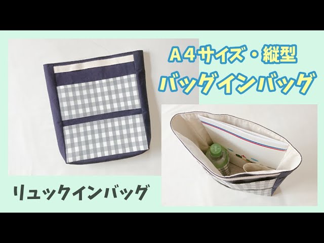 縦型バッグインバッグ の作り方 リュック用バッグインバッグ リュックインバッグA4サイズ。