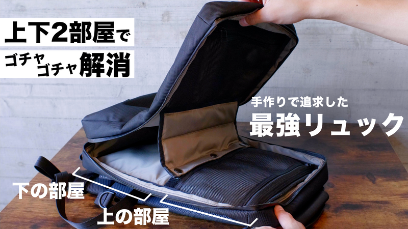 リュックの完成形上下2部屋構造で使いやすさ抜群!!国内で手作り。
