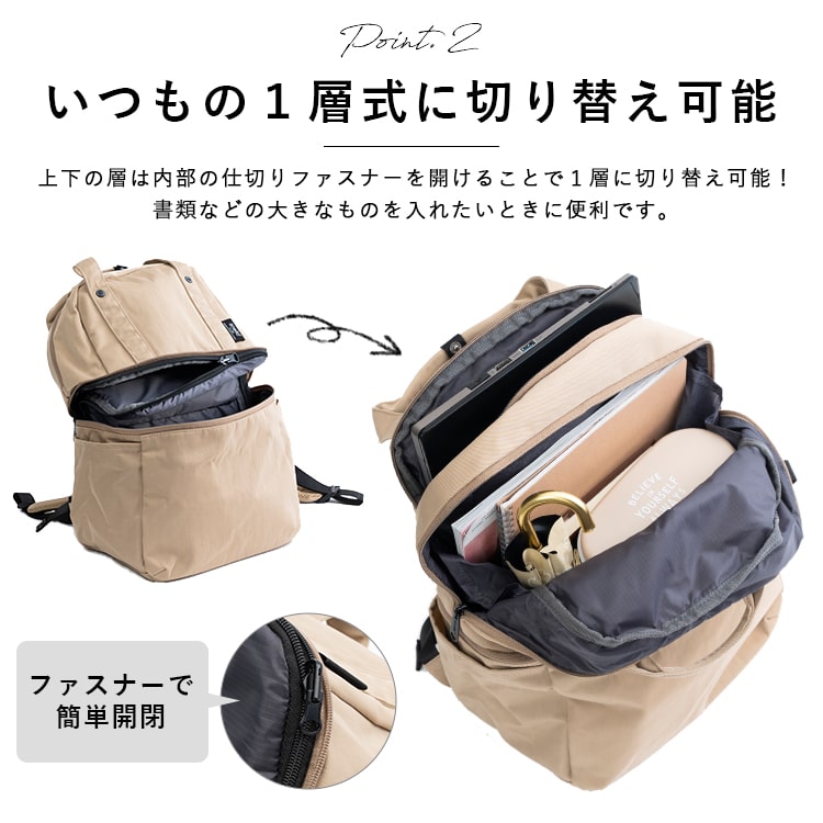 もう財布は探さない! イライラを解消する“上下2部屋構造”リュックTIMELINE タイムライン。