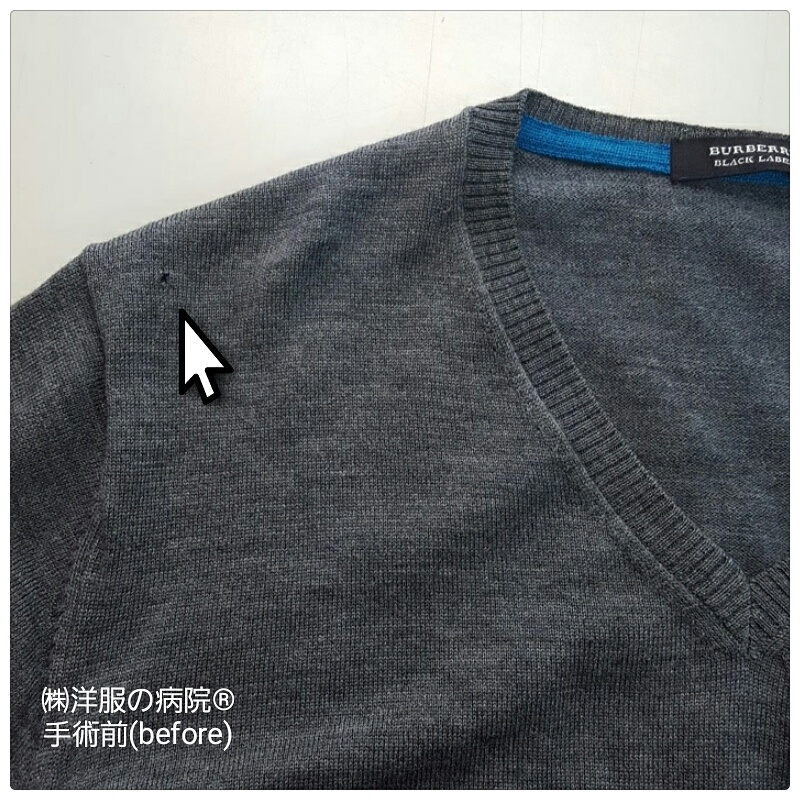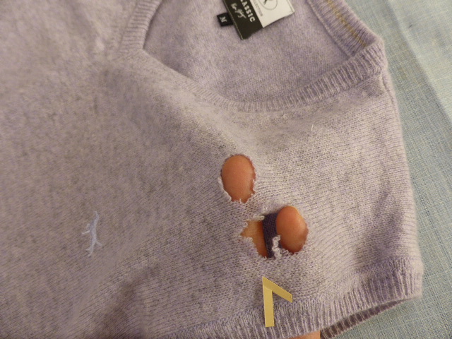 穴あき補修例ニット カシミヤセーター カーディガン リフォーム 修理・補修 これで安心!ニット119番。
