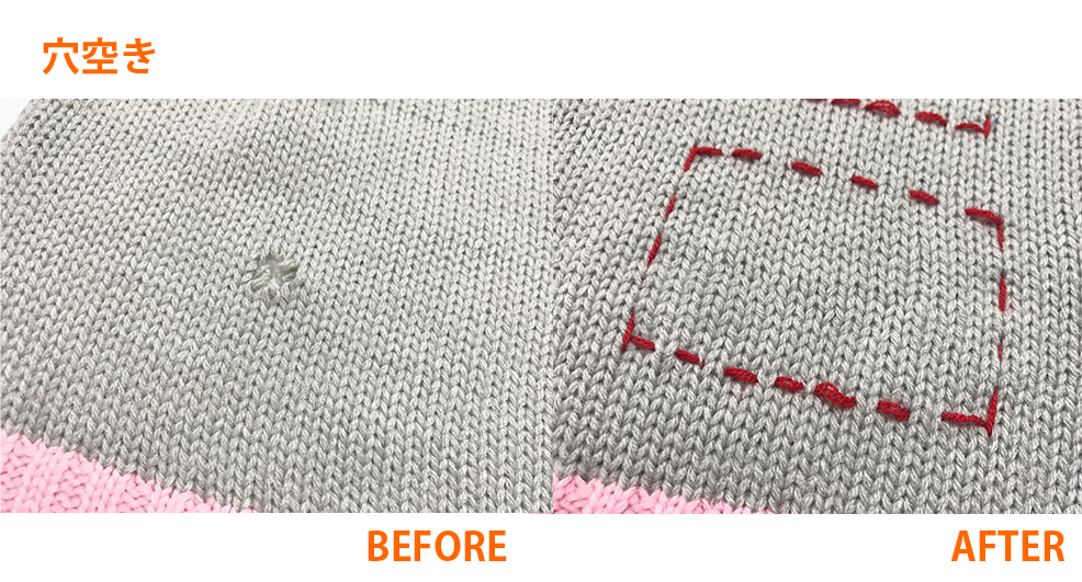 修理価格セーター・ニット製品の修理専門店 修理専科ニットの穴。