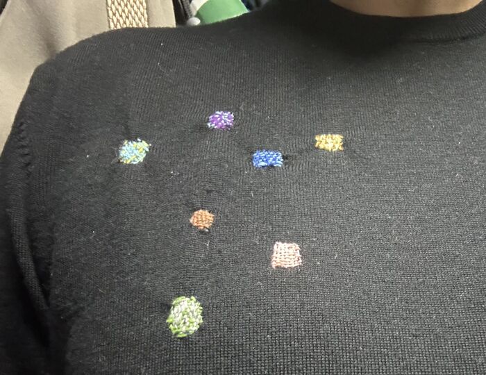 穴の開いたカシミヤセーターを「ダーニング」で可愛く補修しました♪ 楽しかったです^^ - ゆるりーん。