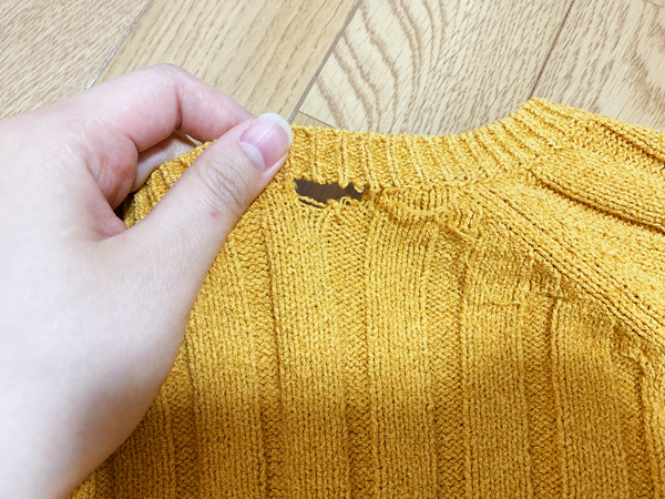 10分でできる 穴の空いたニットを100円アイテムで補修してみた。ホロンノート。