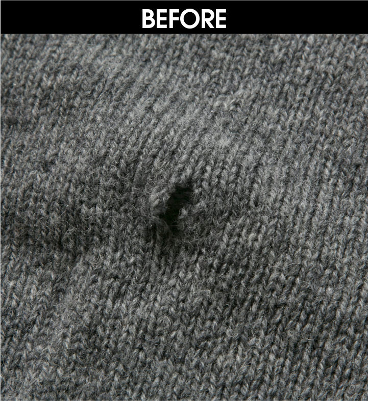 Knit repairニットの穴あき補修阪急三番街店大阪府洋服のリフォームならフォルムアイ。
