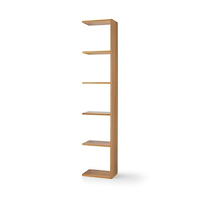 商品紹介 視界の広い間仕切りにも。スタッキングシェルフ - 基本セットと追加セットを組み合わせて、自分好みの棚をつくれる、スタッキングシェルフ。壁につけて設置することはもちろん、3段までの高さであれば、パーテーションとしても活用できます。たとえば基本。