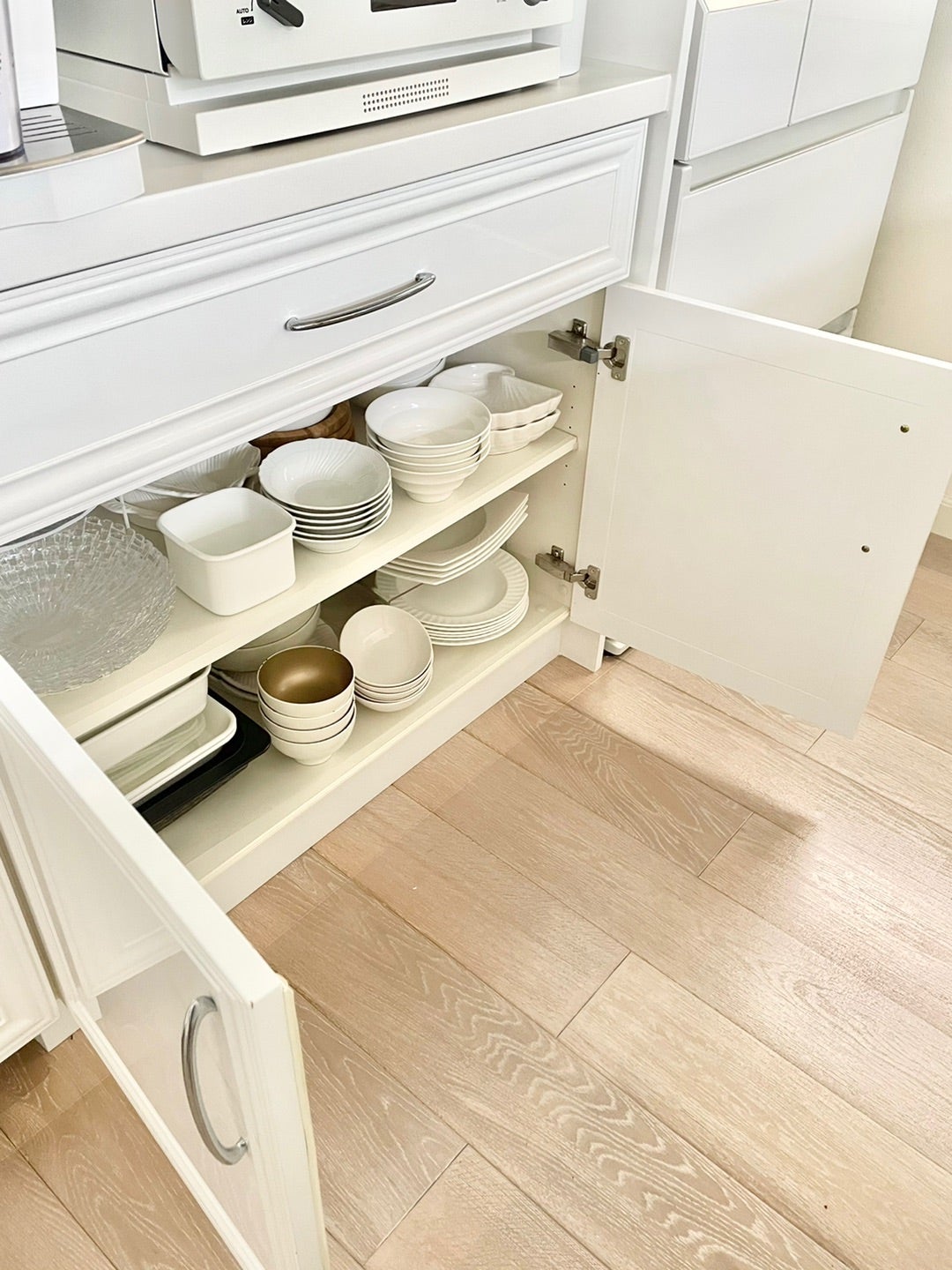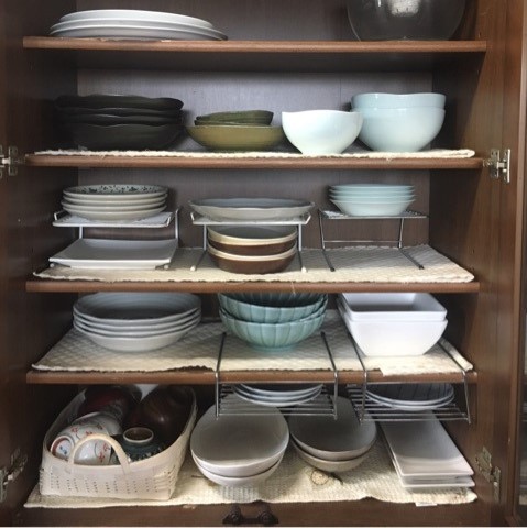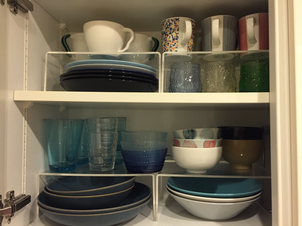 食器棚◇無印アクリル仕切棚で大皿収納を見直し&断捨離の決心がつかない場合どうする?わが家のここち。