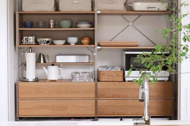 無印良品のユニットシェルフでつくる、キッチンのオープン収納術 - 北欧、暮らしの道具店。