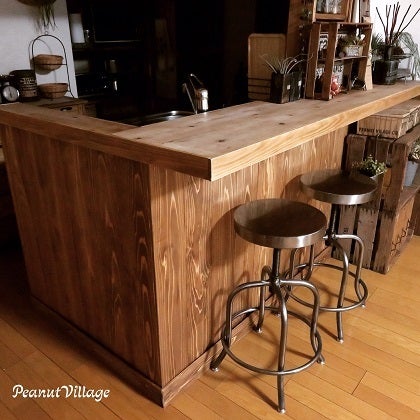 DIYでキッチン改造8カウンター下を板張りに! 原状回復OK!ほぼ完成Peanut Village*ちょこっと手作りDIY*。