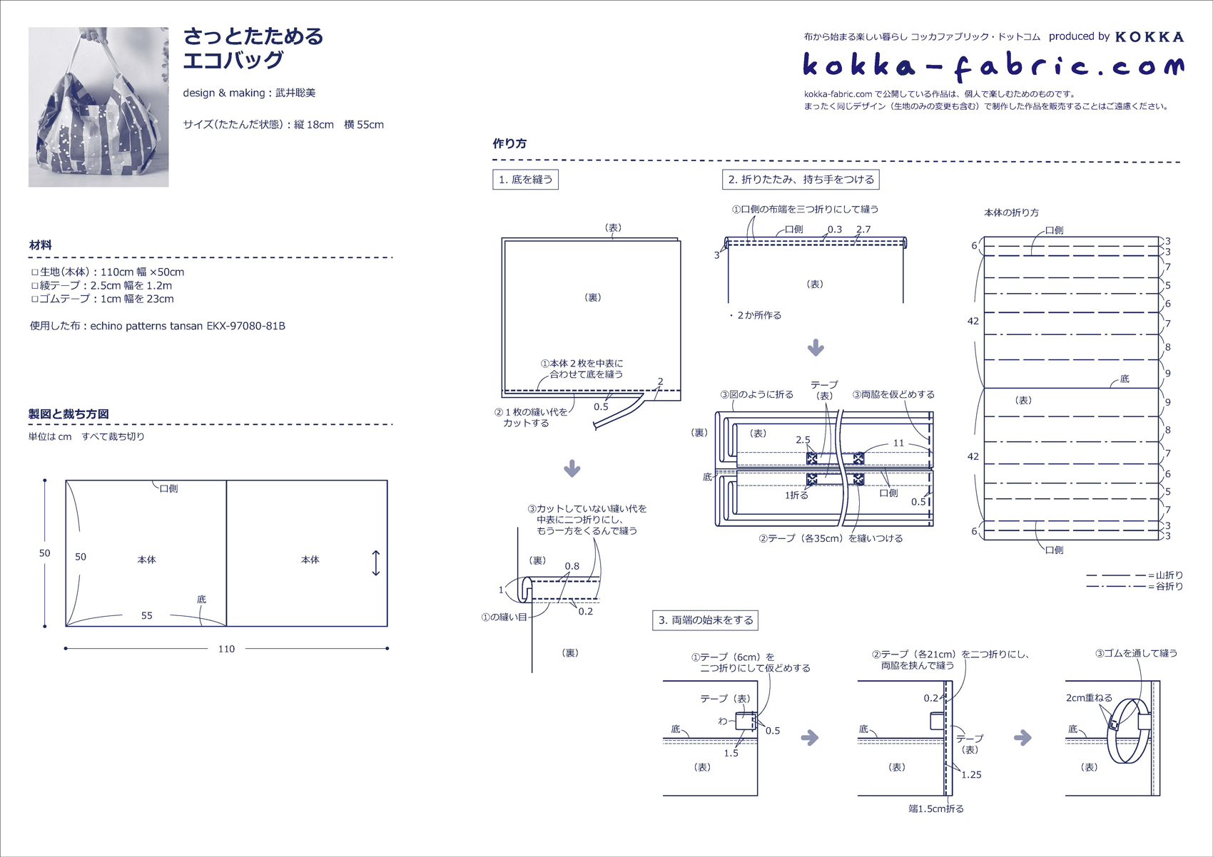 蛇腹折りでたっぷり収納。さっとたためるエコバッグの作り方 – kokka-fabric.com。