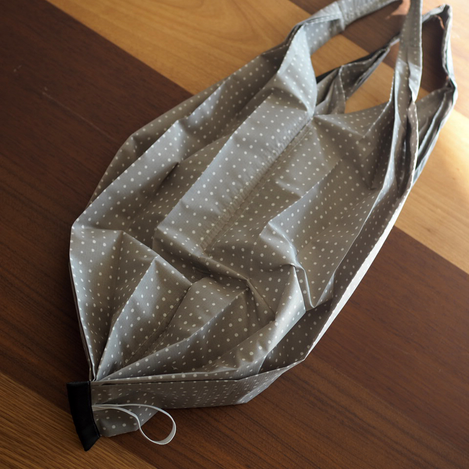 しずく型シュパット風エコバッグの作り方 コンビニ用・一瞬でたためるドロップ型のじゃばら式マイバッグ DIY。