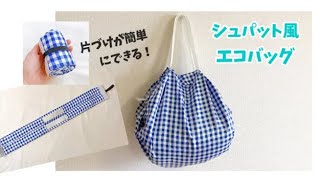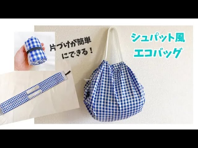 シュパット風 収納が簡単なエコバッグの作り方 ナイロン生地、裏地なし レジ袋バッグ、じゃばらエコバッグ - YouTube。