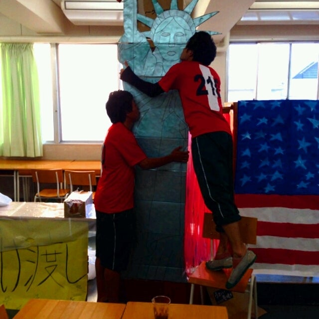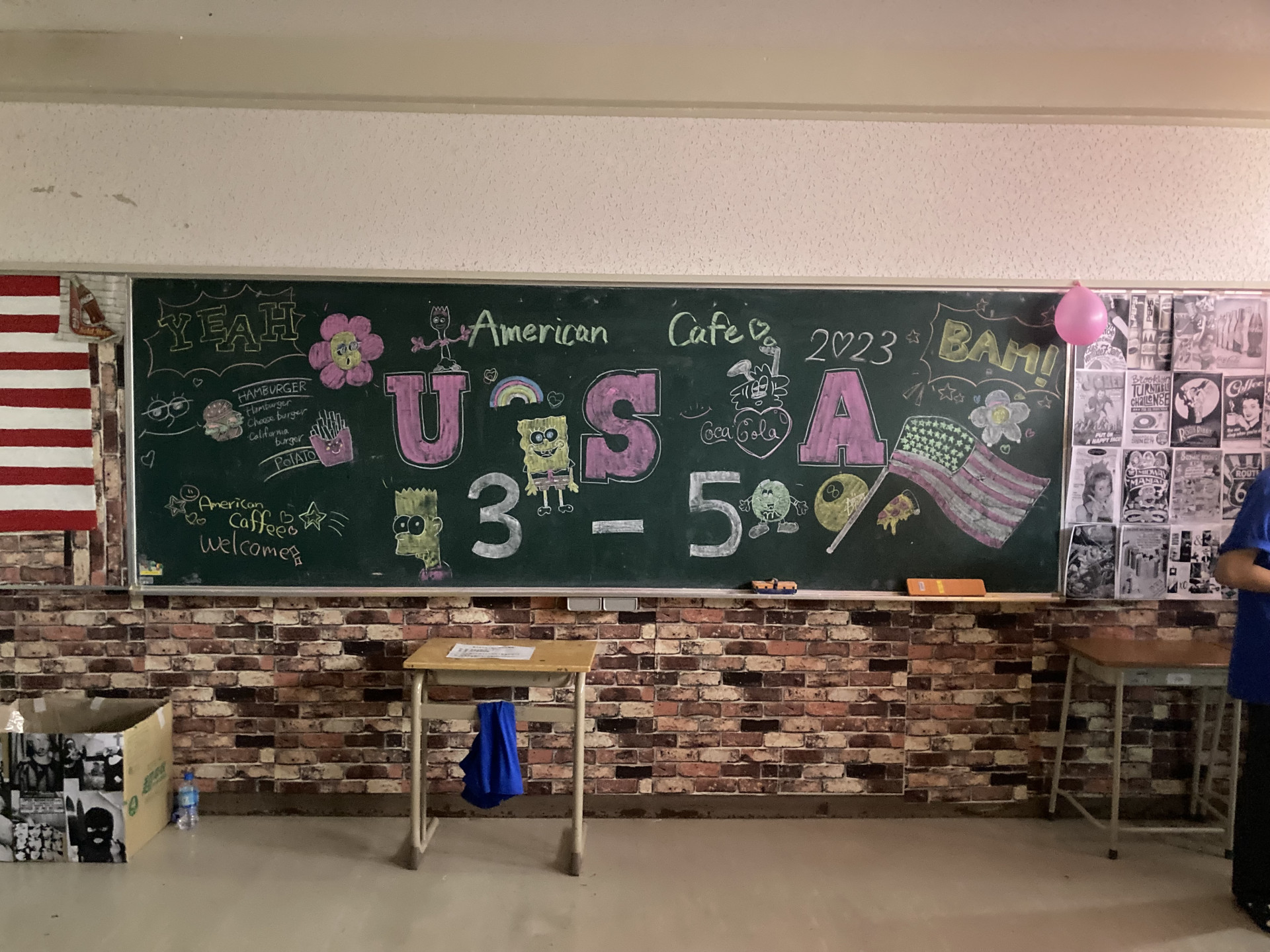 文化祭でUSAカフェするよ 🇺🇸 🍩 みんなで頑張ったかいあった 🌟。