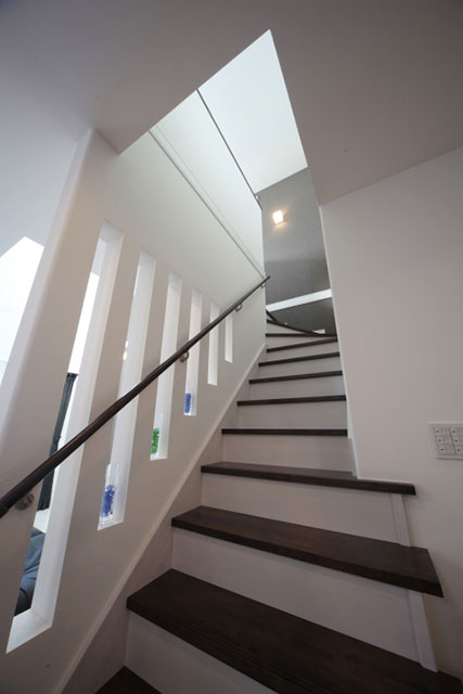 スリット階段から光が差し込む家大阪で注文住宅を建てるなら福島工務店株式会社。