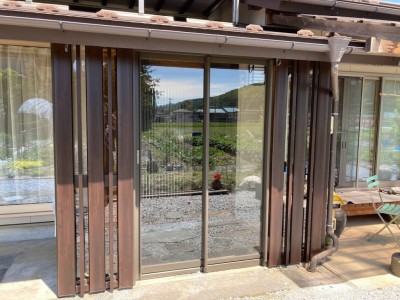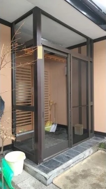 古民家の和風屋根の玄関ポーチに風除室を施工しました! 白山市MADOショップ 公式サイト。