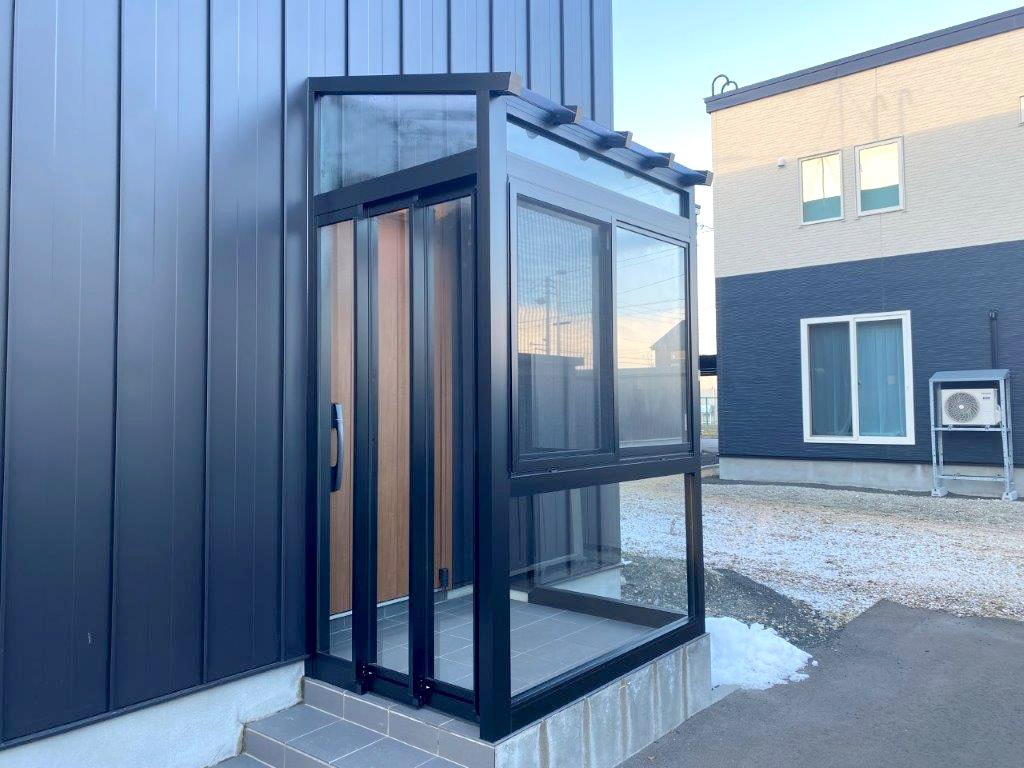 風除室を後付けしておしゃれで機能的な玄関へ!リクシル風除室施工例ダルパ旭川市窓・玄関ドア・エクステリアリフォームのプロショップ。