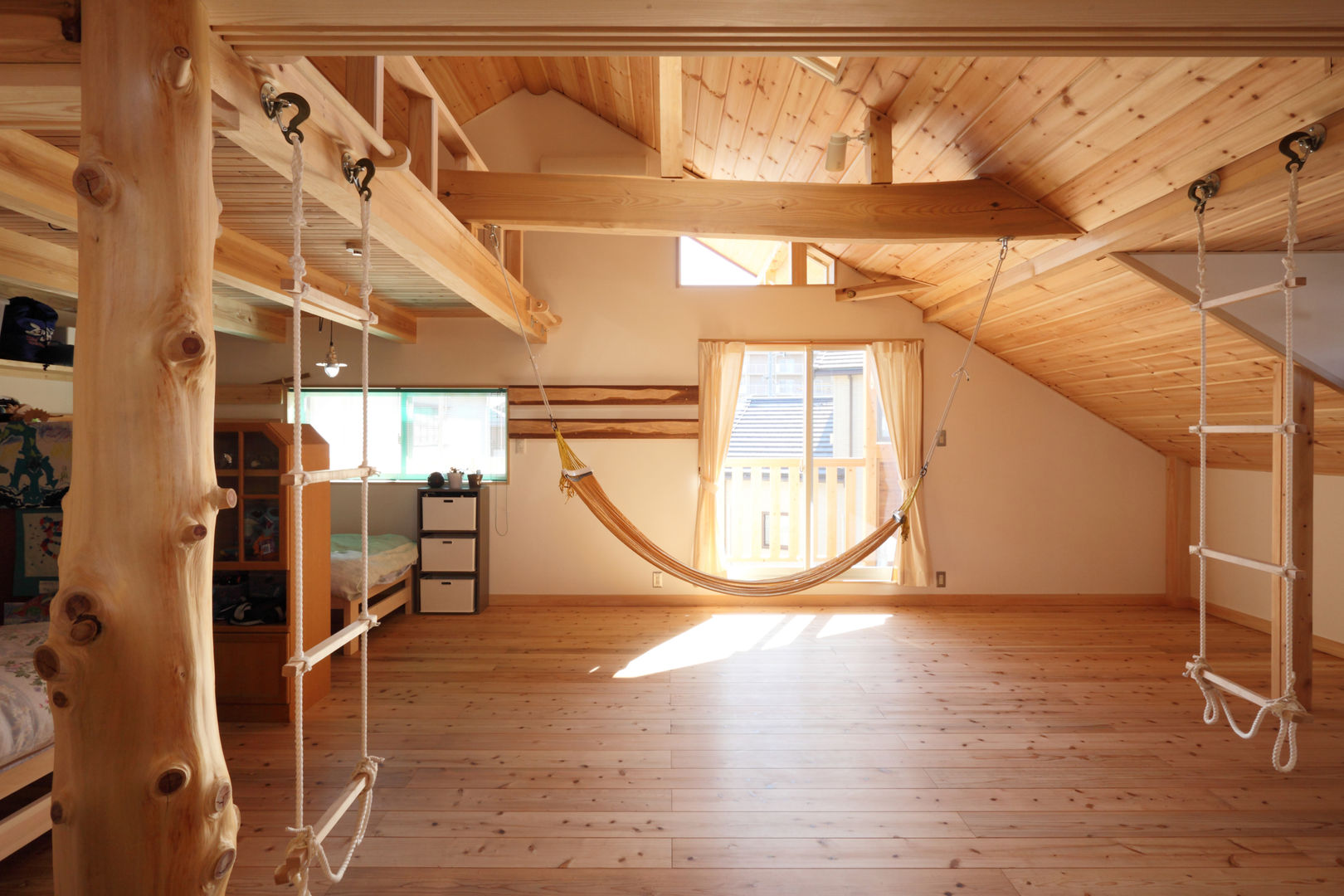小屋裏の使い勝手近くの森の木で建てる。外断熱の注文住宅。