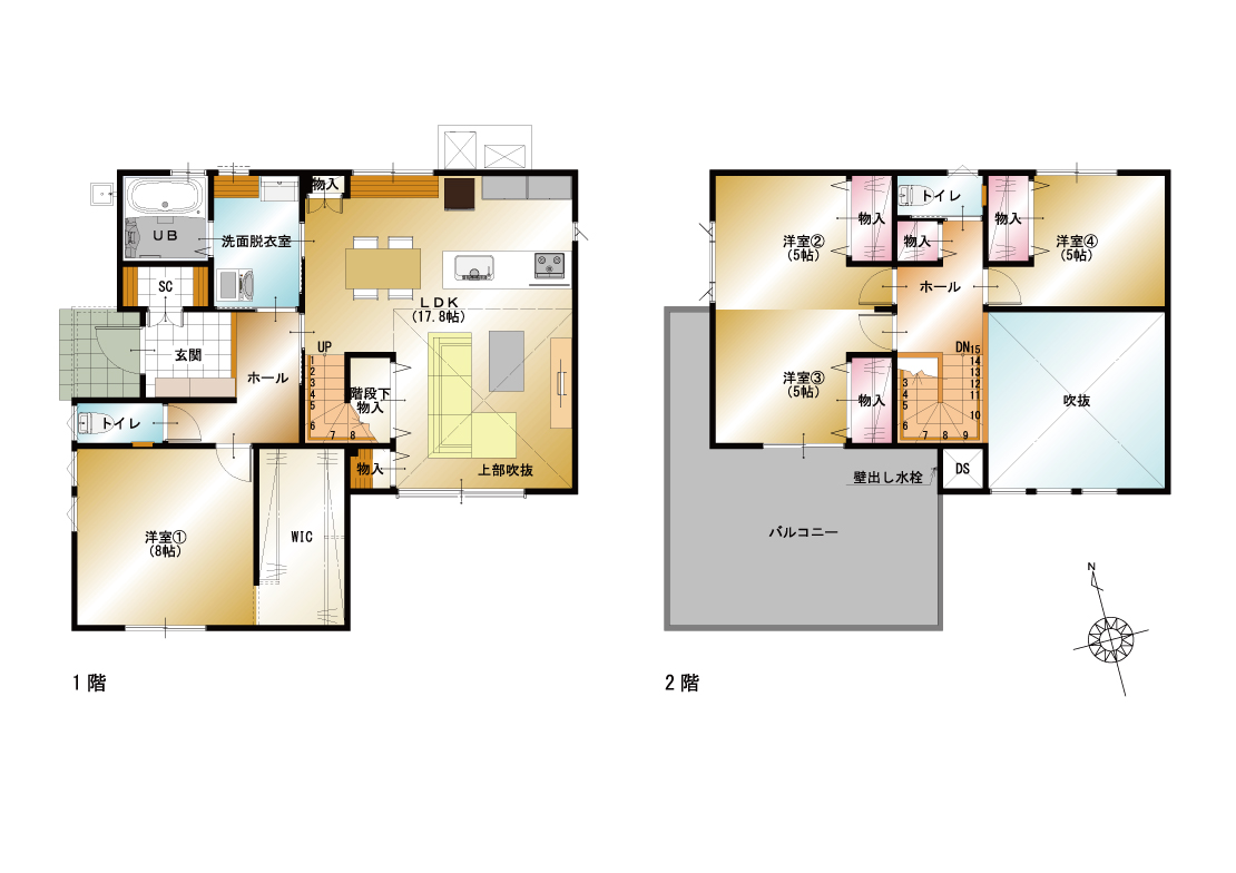 2階建×3LDK×30坪30坪で充実!1階に主寝室がある間取りNo.2-4咲くくらし。