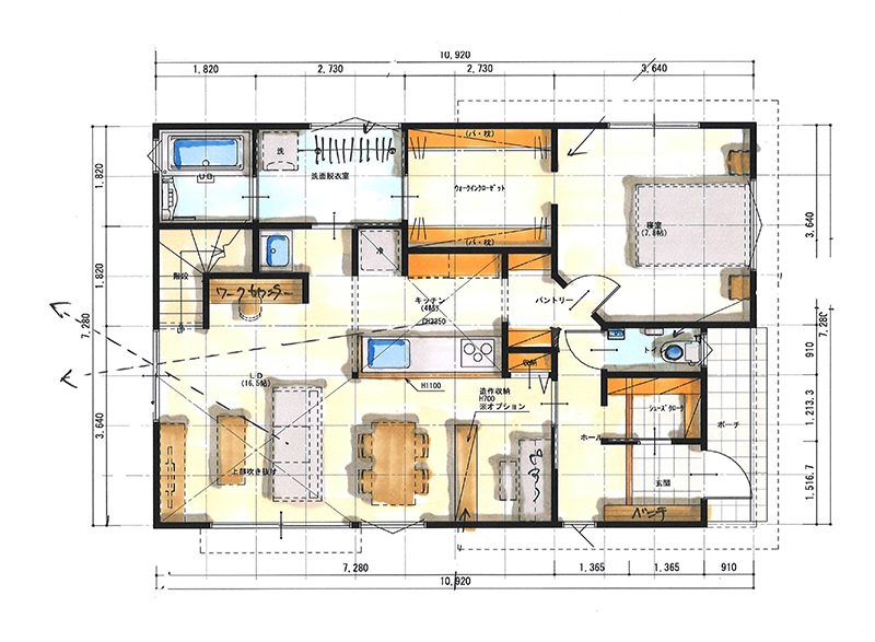 注文住宅 間取りプラン 32坪 1階で生活を完結できる間取りの家栃木県宇都宮市の工務店 薄井工務店。