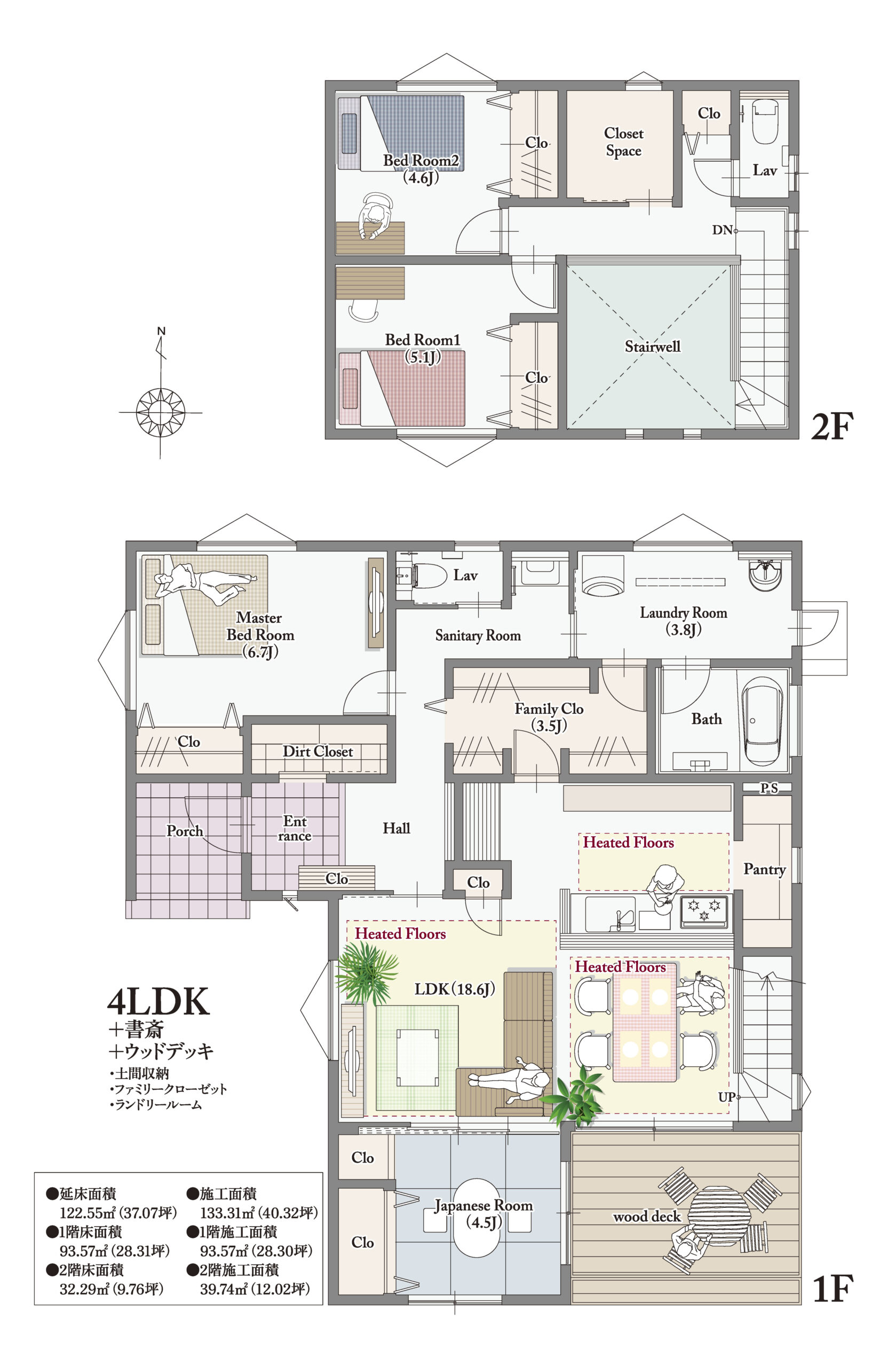 夫婦の寝室が一階にある4ldkの間取り35坪〜40坪の家族構成が変化したら平屋のように暮らせる家福井の注文住宅・工務店ノークホームズ。