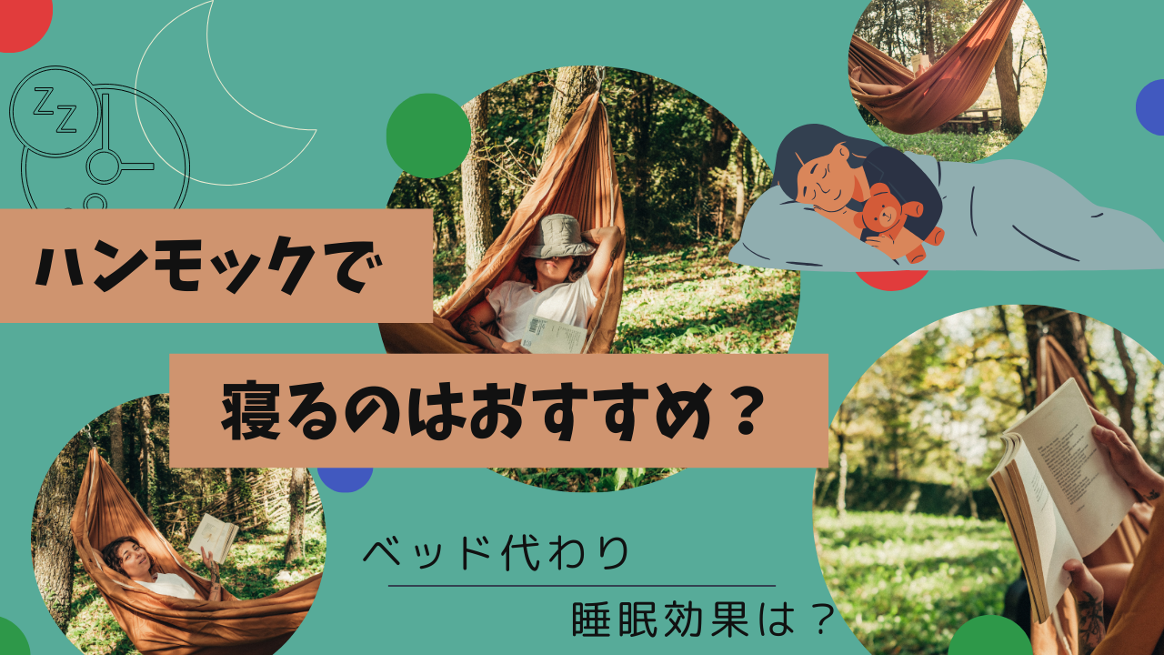 寝つきが良くなる まず挙げられるのは、ハンモックの適度な揺れの影響で入眠までの時間が短くなる可能性があります。寝具に悩みを抱えている方の中には、夜早く寝たくてもなかなか寝付けないという悩みを抱えている方もいるでしょう。 ハンモックを寝具にすること。